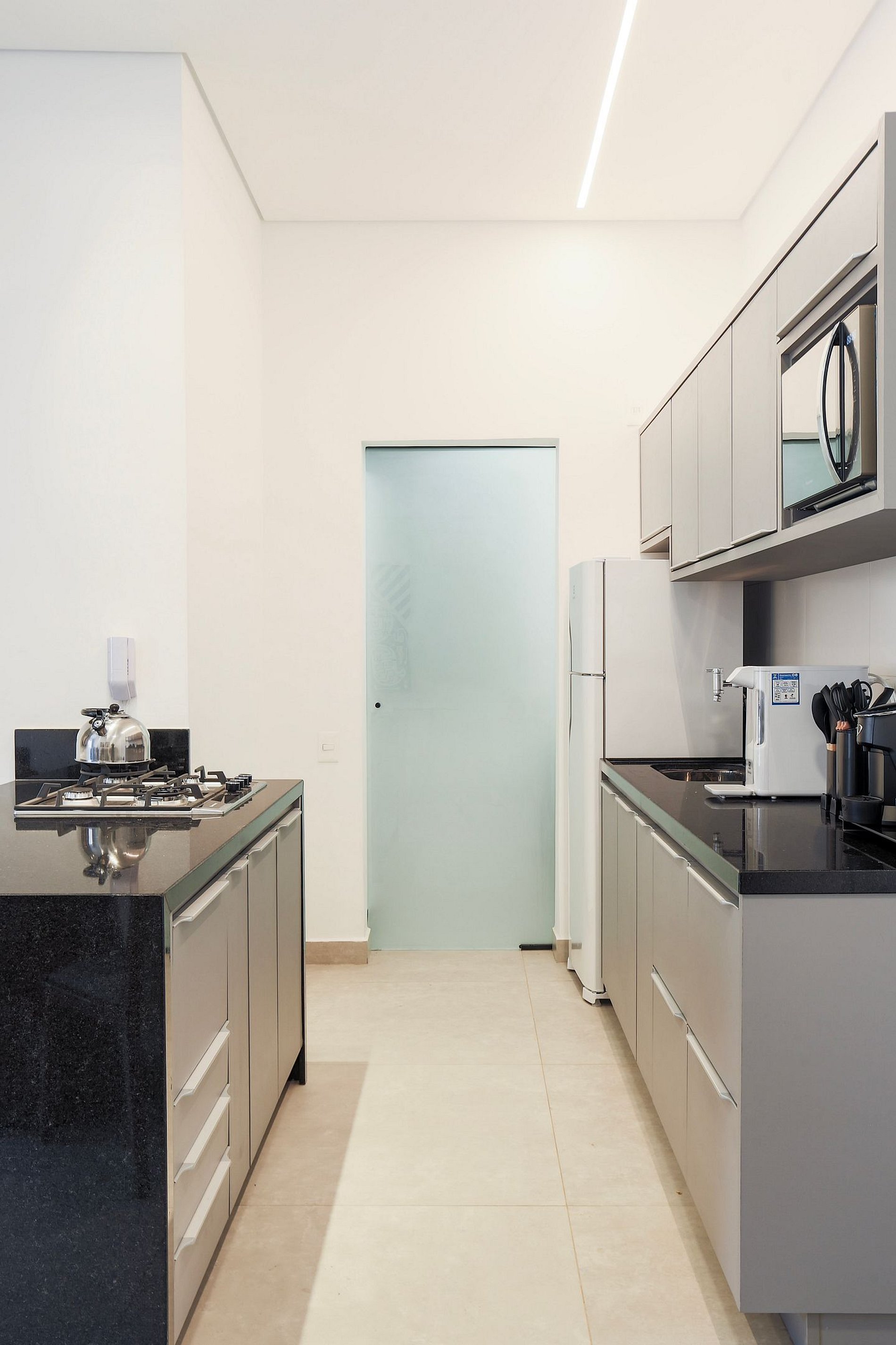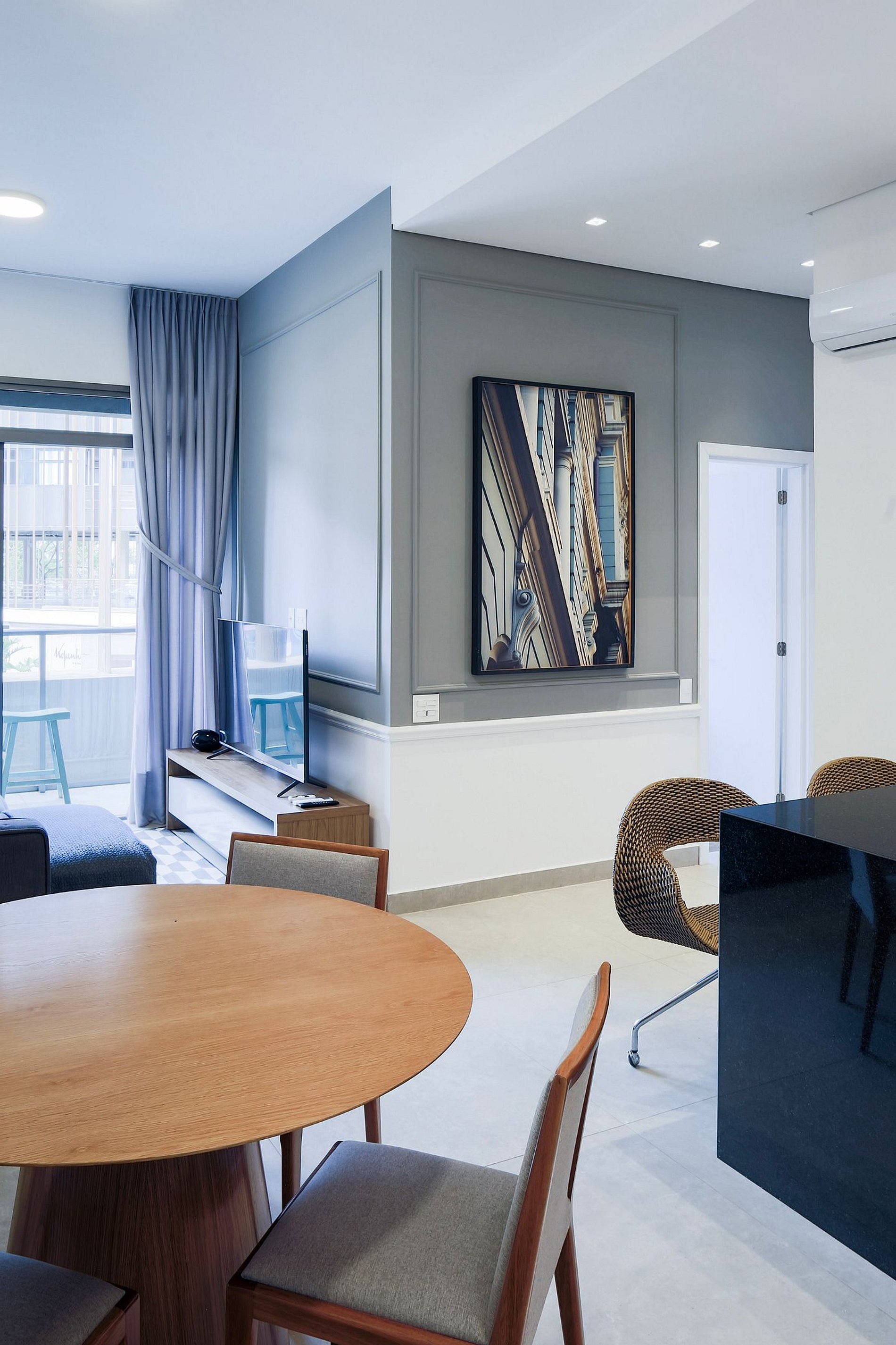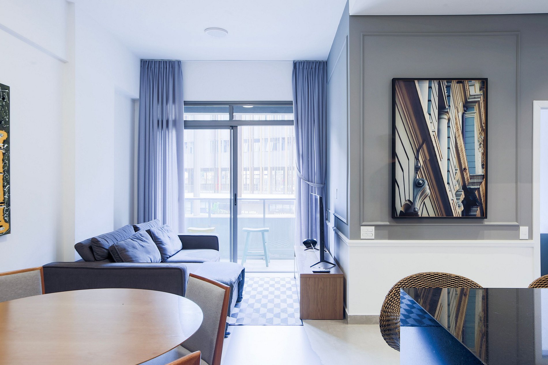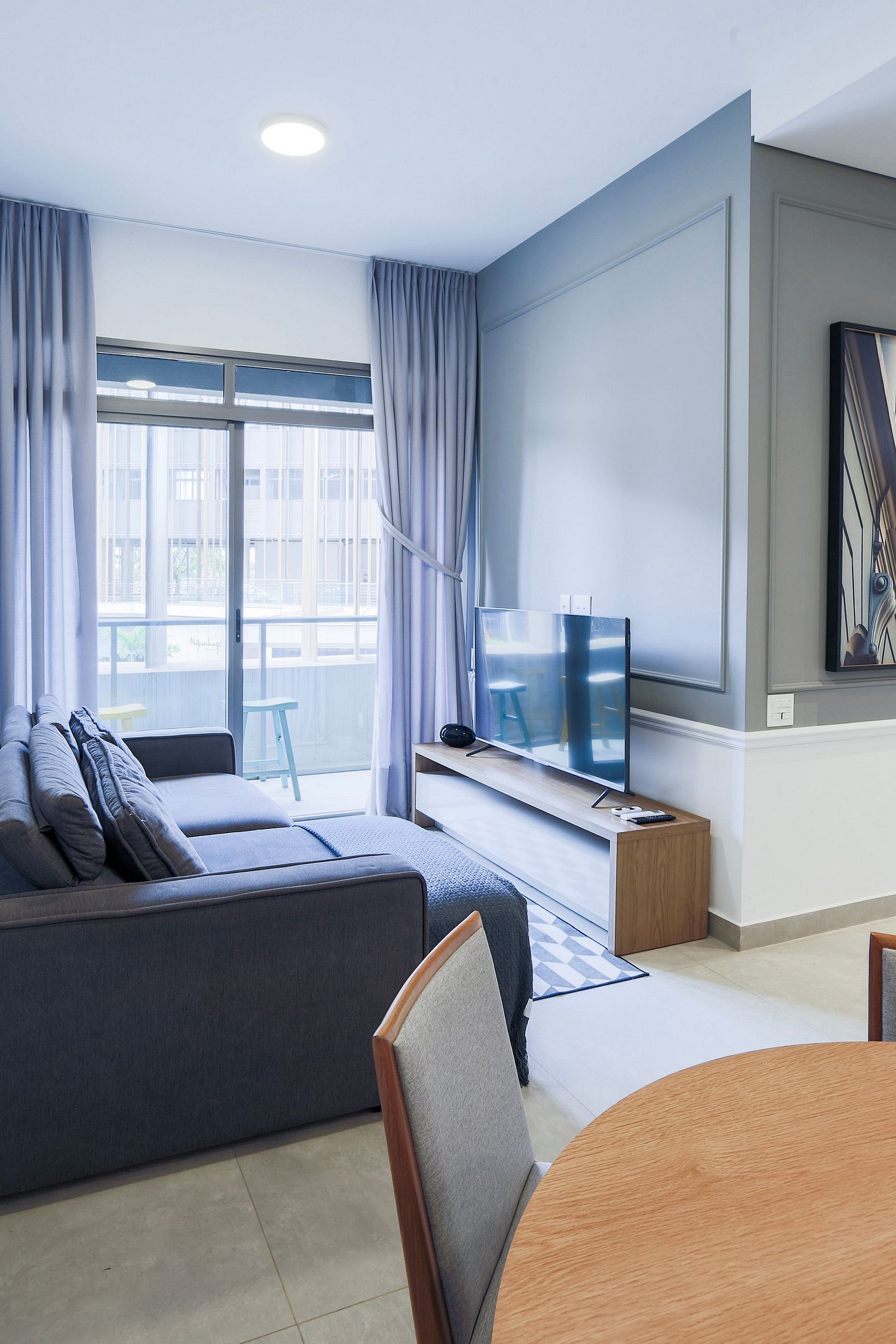 O espaço conta com dois quartos (sendo uma suíte), ar-condicionado, Wi-Fi de alta velocidade e uma cozinha totalmente equipada — ideal para estadias de trabalho ou lazer.