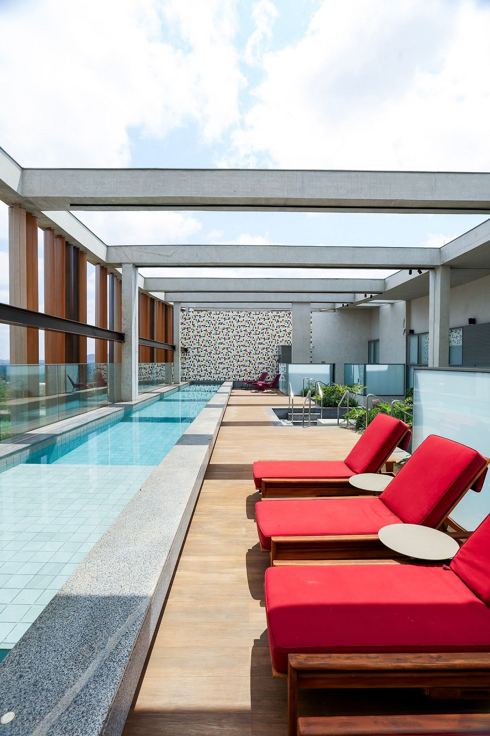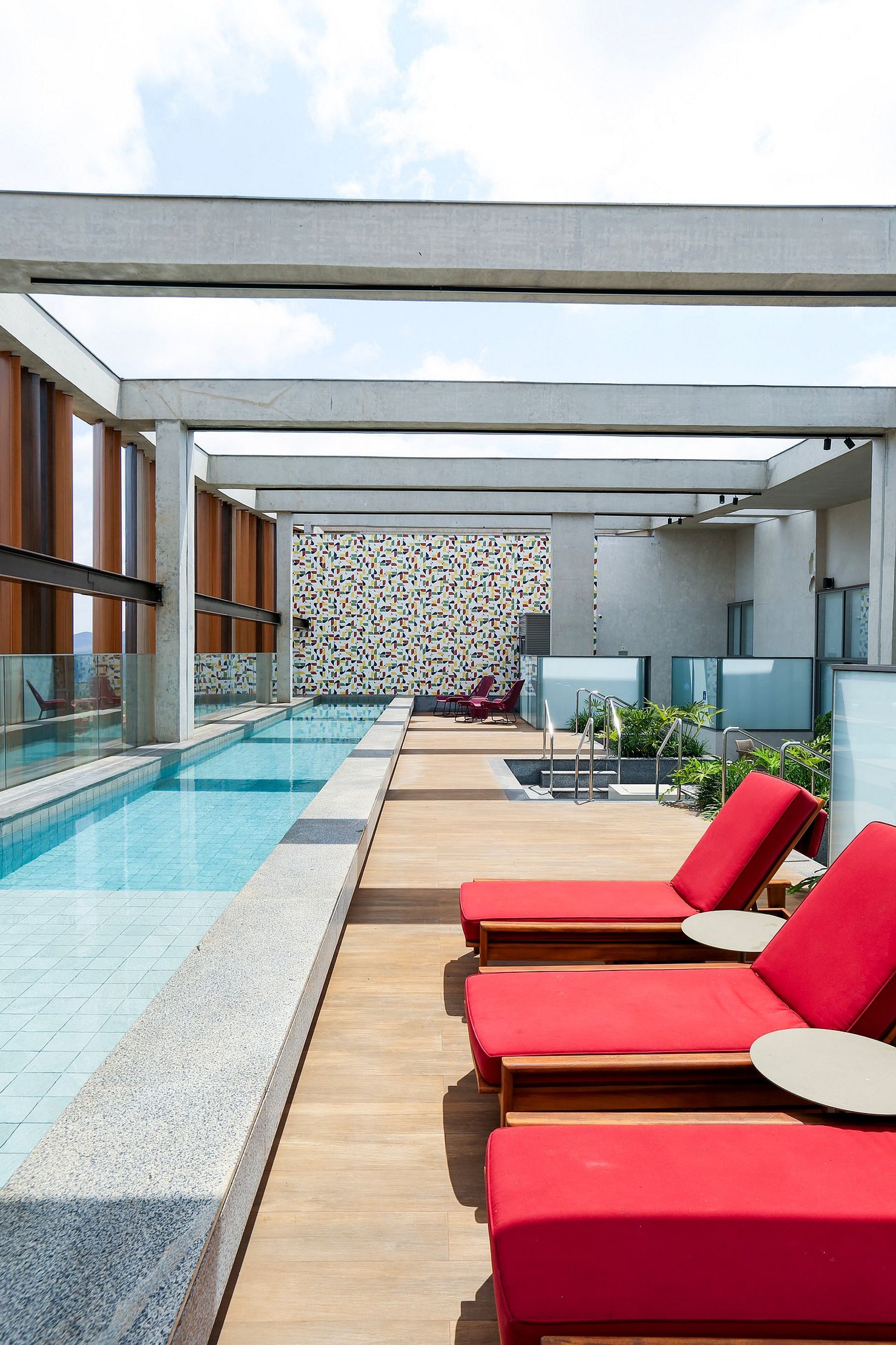 O prédio é novo, com área de lazer completa e uma piscina no rooftop com vista deslumbrante para a lagoa e as montanhas.
