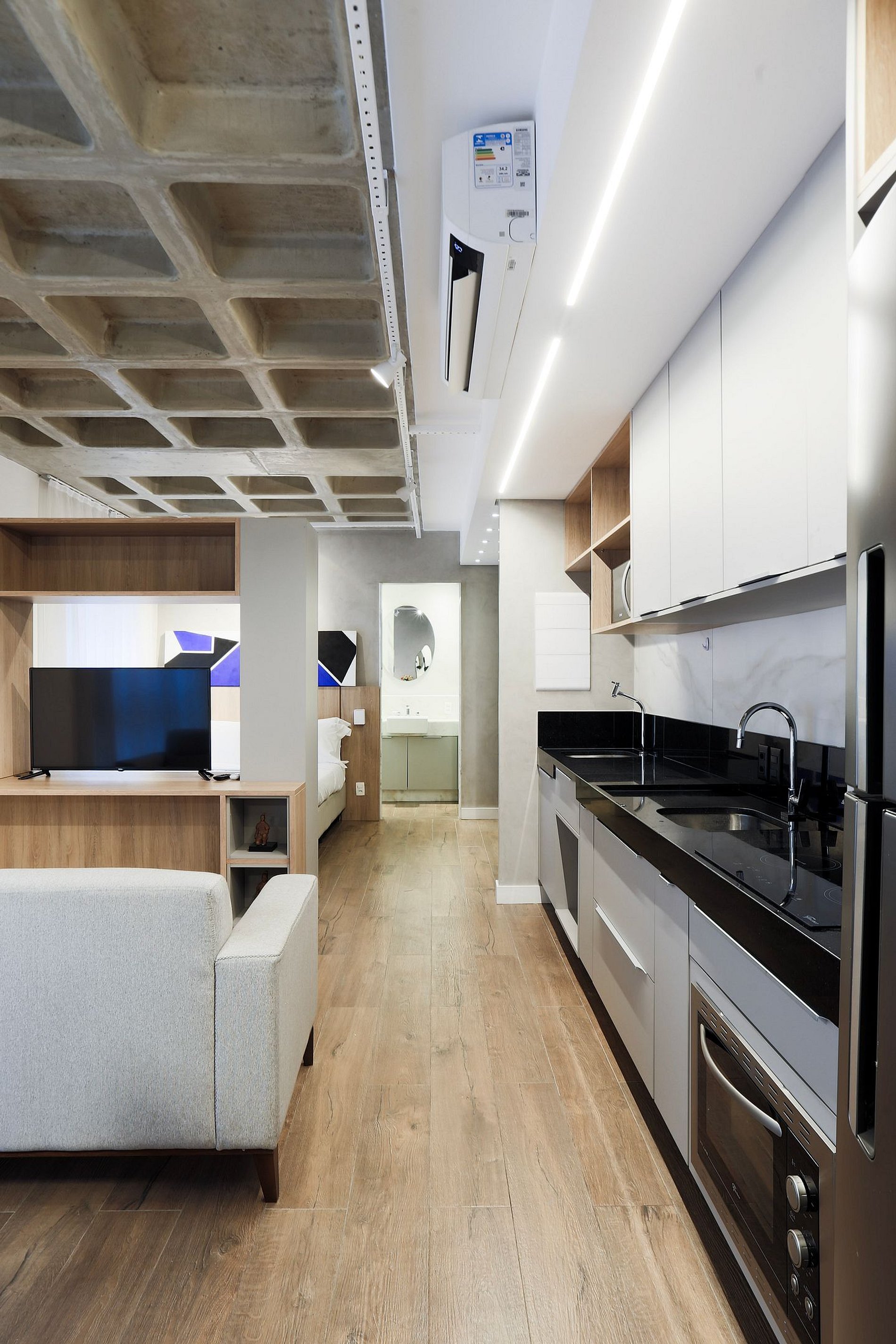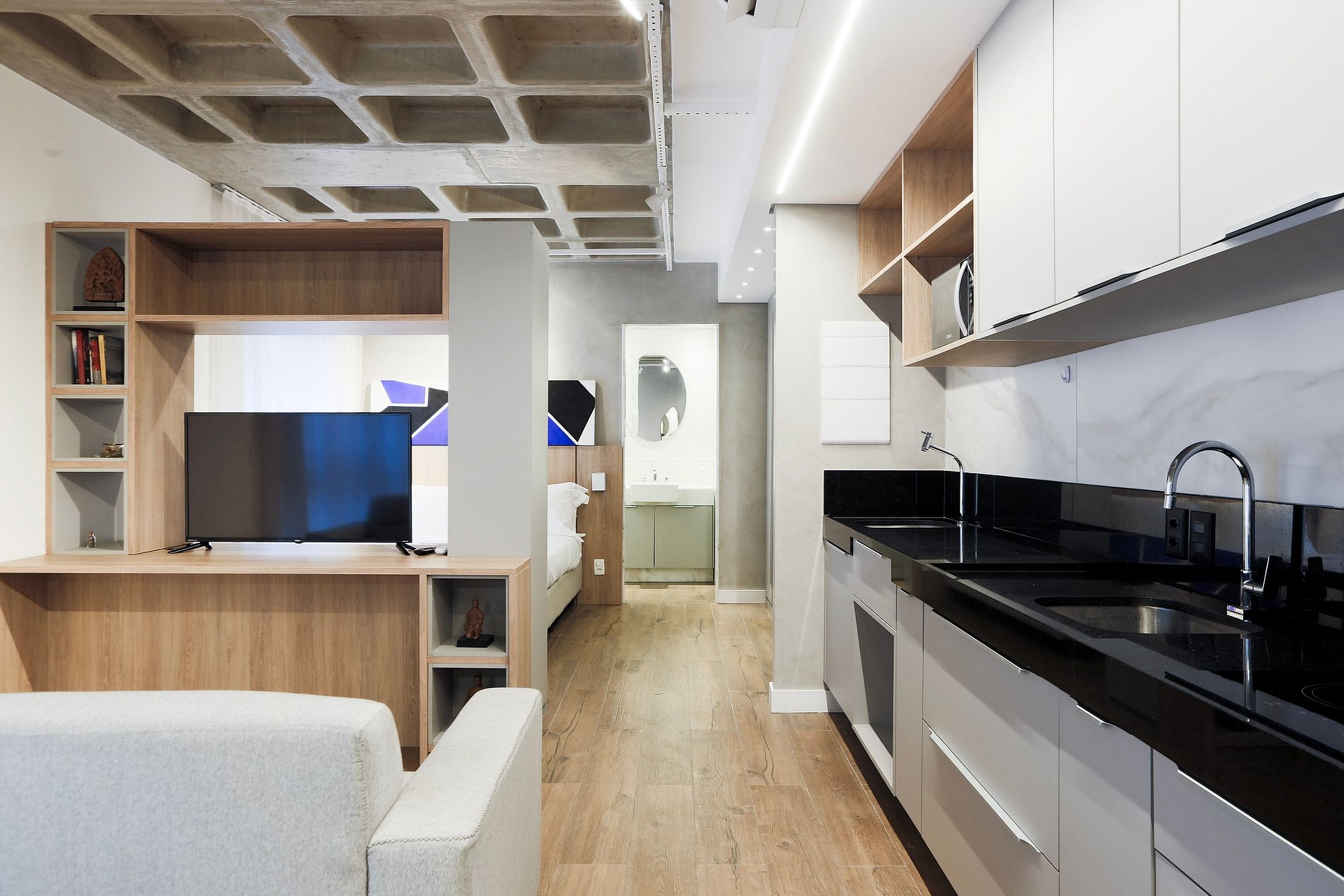 Loft confortável e elegante, decorado com bom gosto e equipado com enxoval de alta qualidade. Um espaço acolhedor, pensado para proporcionar uma estadia tranquila no melhor ponto da Savassi.