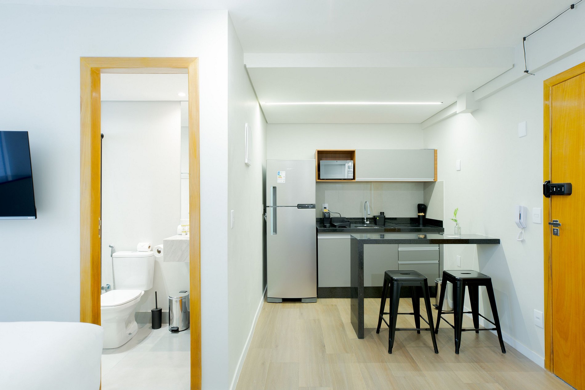 Um espaço pensado para quem valoriza conforto e praticidade. O estúdio é totalmente novo, com mobiliário de qualidade, uma cama boa e aconchegante que garante noites de sono reparadoras. A cozinha é completa e bem equipada, ideal tanto para preparar refeições simples quanto para quem gosta de cozinhar com calma. Cada detalhe foi escolhido para oferecer uma experiência funcional e acolhedora, em um ambiente que transmite leveza e bem-estar. E o melhor: a localização é incrível — no bairro São Pedro, a poucos minutos da Savassi, com tudo o que você precisa ao redor.