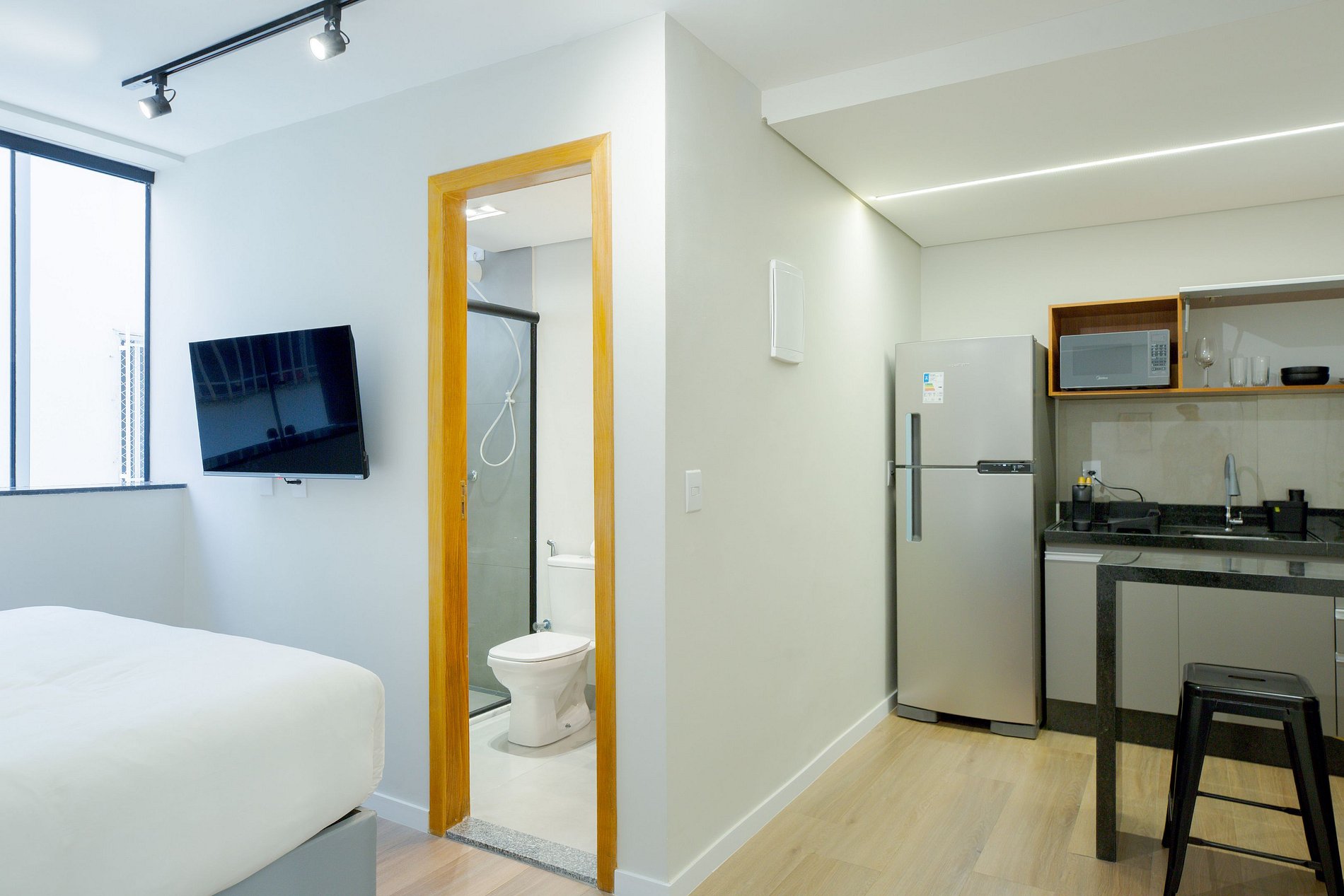 Estúdio novo, confortável e super bem equipado, perfeito para quem busca praticidade sem abrir mão do conforto. A cama é excelente e a cozinha tem tudo o que você precisa. Cada detalhe foi pensado para tornar sua estadia agradável e funcional. A localização é incrível: no bairro São Pedro, a poucos minutos da Savassi e de tudo o que há de melhor em BH.