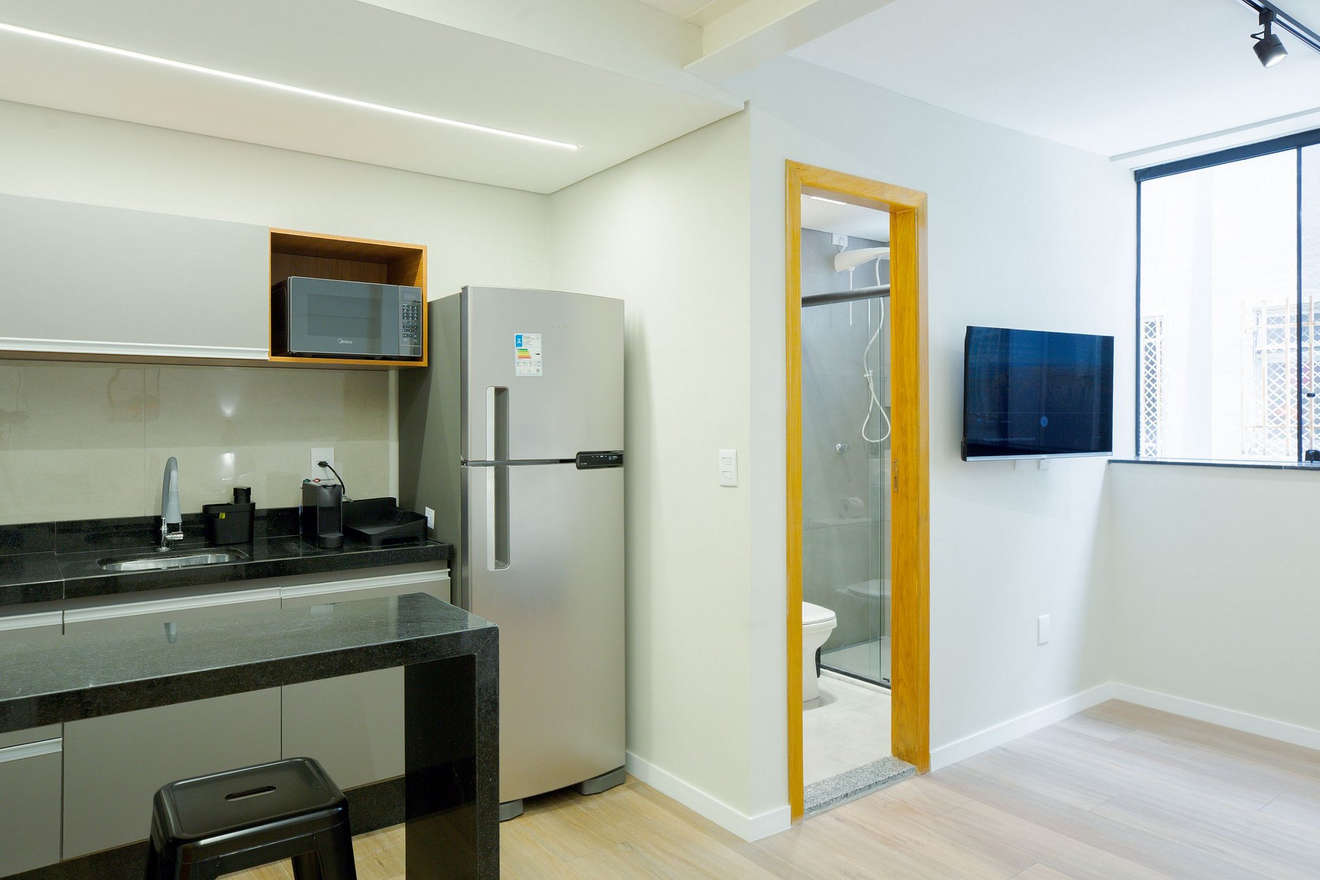 Um espaço pensado para quem valoriza conforto e praticidade. O estúdio é totalmente novo, com mobiliário de qualidade, uma cama boa e aconchegante que garante noites de sono reparadoras. A cozinha é completa e bem equipada, ideal tanto para preparar refeições simples quanto para quem gosta de cozinhar com calma. Cada detalhe foi escolhido para oferecer uma experiência funcional e acolhedora, em um ambiente que transmite leveza e bem-estar. E o melhor: a localização é incrível — no bairro São Pedro, a poucos minutos da Savassi, com tudo o que você precisa ao redor.