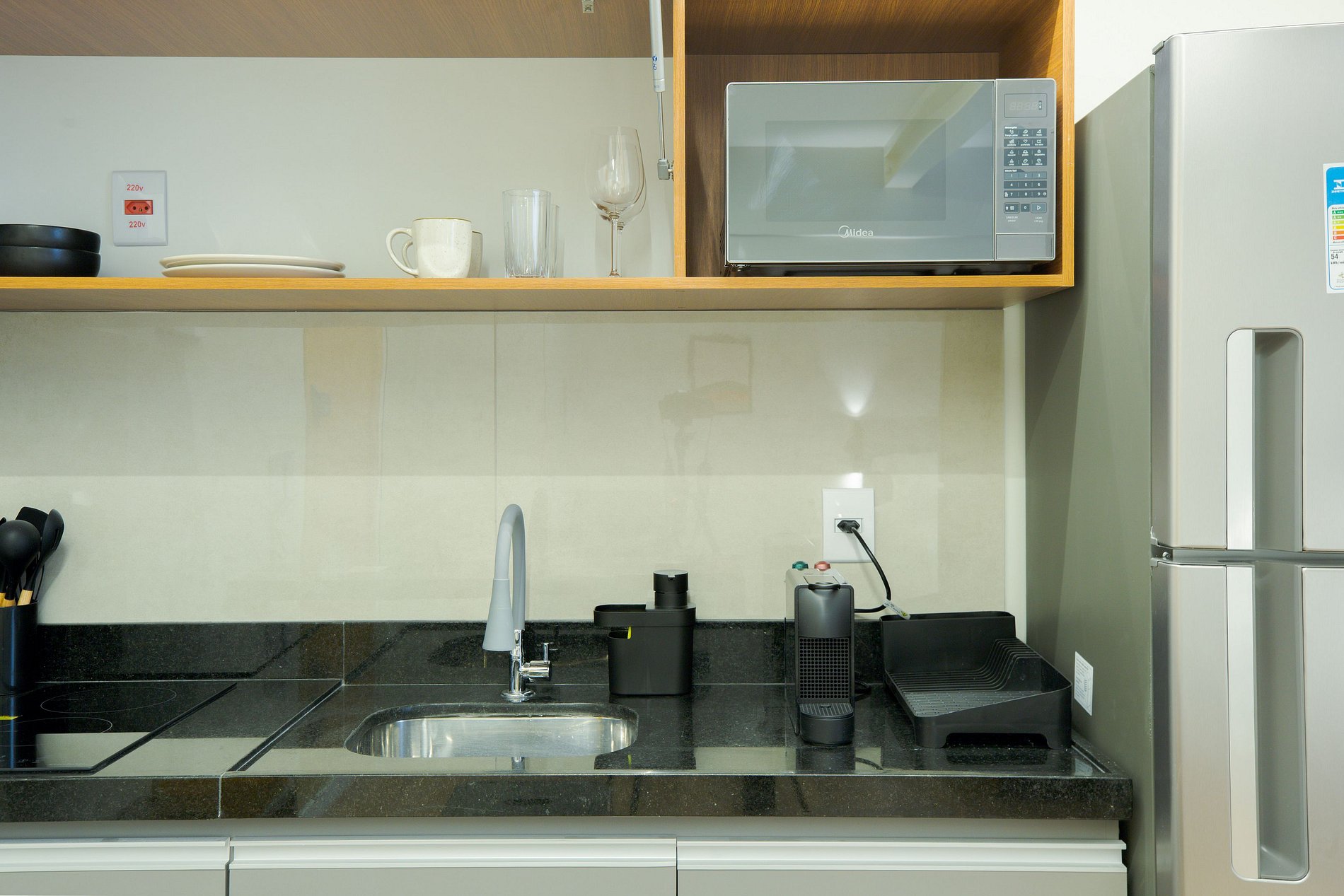 Estúdio novo, confortável e super bem equipado, perfeito para quem busca praticidade sem abrir mão do conforto. A cama é excelente e a cozinha tem tudo o que você precisa. Cada detalhe foi pensado para tornar sua estadia agradável e funcional. A localização é incrível: no bairro São Pedro, a poucos minutos da Savassi e de tudo o que há de melhor em BH.